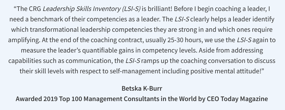 The Leadership Skills Inventory—Others (LSI-O) allows leaders to measure how their skills are perceived by their team and colleagues. Coaches use this assessment with their clients to excel at leading their clients. HR professionals use it to determine what training would benefit middle managers and supervisors.