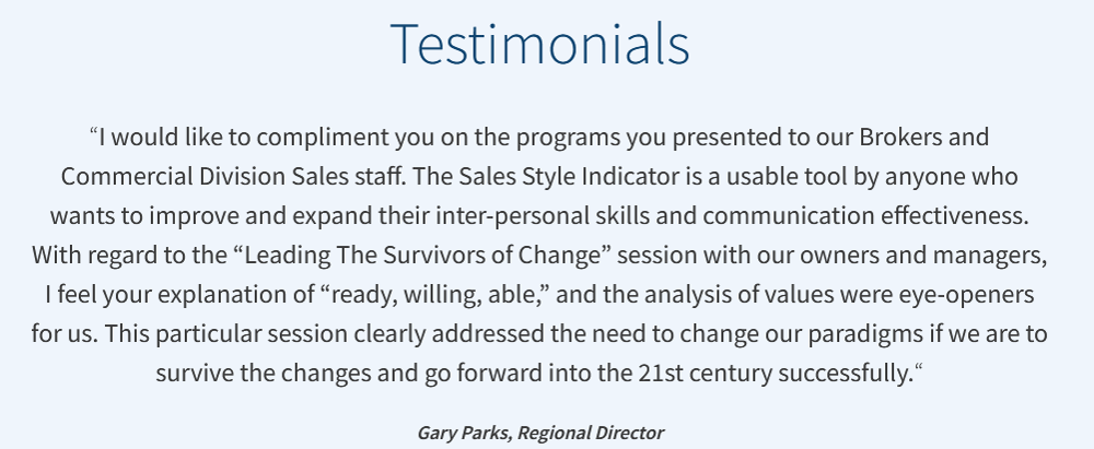 - Recognise the impact and effect that your/their selling style is having on the way you relate to clients and potential clients.